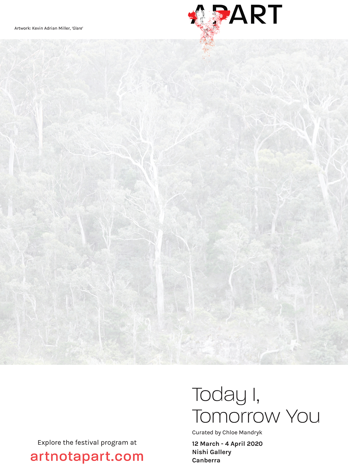 glare – today I, tomorrow you exhibition Glare at the Today I, Tomorrow You exhibition at the Nishi Gallery during the ArtNotApart festival 2020 Installed works in the Nishi Gallery Related